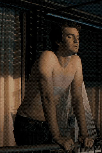 Без майки на теле, Гарфилд выглядит просто великолепно: его мускулатура и силуэт возбуждают воображение, показывая, что истинная красота заключается в лишенной излишеств естественности.