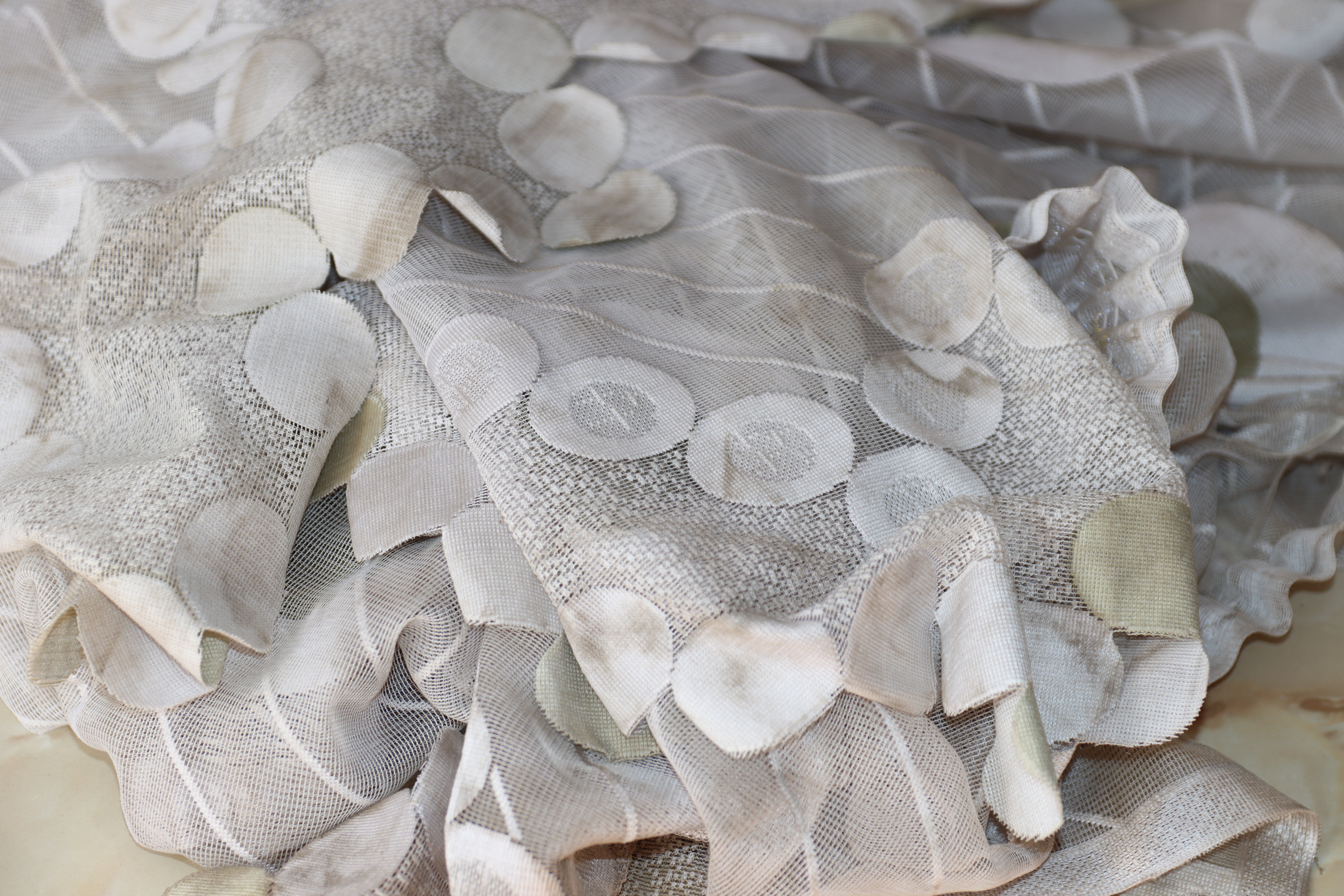 Тщательно просмотрите тюль на предмет возможных повреждений перед применением химических или отбеливающих средств.