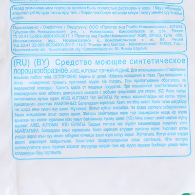 Проверяйте срок годности на упаковке стирального порошка Ариэль перед покупкой.