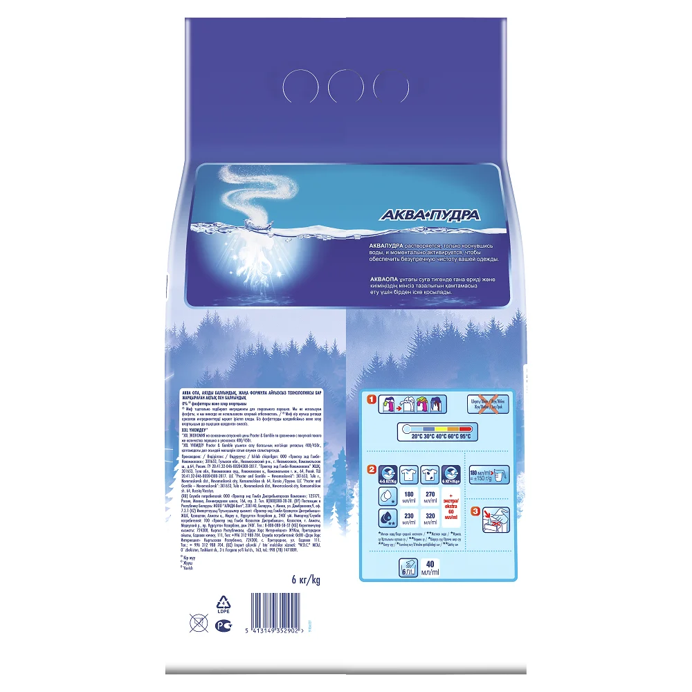 Используйте аквапудру вместе с другими моющими средствами для достижения наилучшего результата.