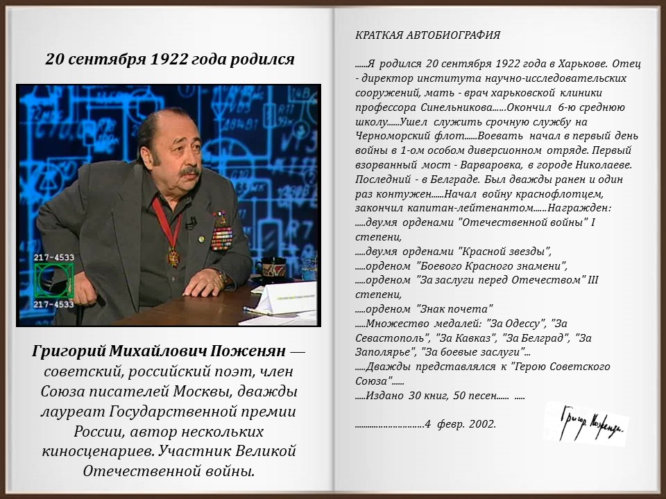 Григорий Поженян – я такое дерево, что в каждом листочке узреть судьбу можно - смотрите в нашей подборке