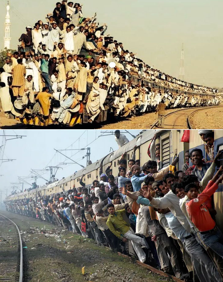 Взгляните на сумасшедшую симфонию красок, заполнивших поезда с людьми в Индии. Это потрясающее сочетание динамики, традиций и людской энергии, в котором чувствуется душа нации в каждом вагоне и каждом лице.