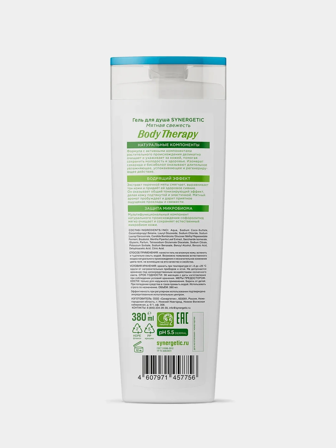Уникальная формула геля для душа Synergetic делает его идеальным для людей с чувствительной кожей, так как он не вызывает раздражение и аллергические реакции.