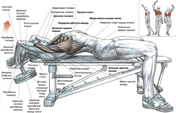 Пуловер с гантелей лёжа: техника выполнения