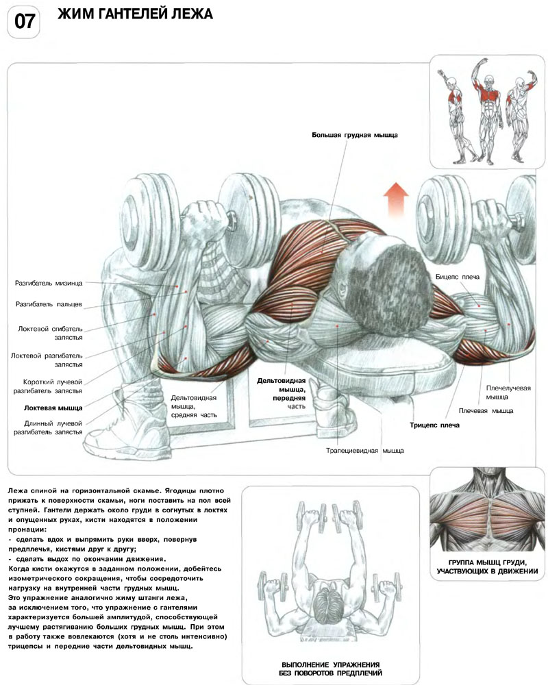 Упражнения для груди с гантелями