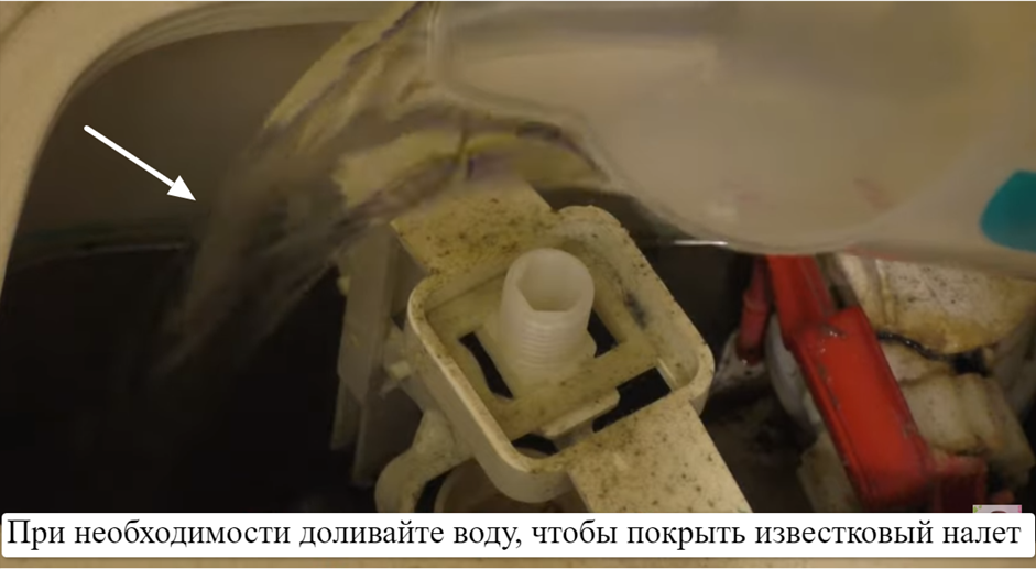 Приготовьте раствор из лимонной кислоты и воды в соотношении 1:Полностью залейте бачок этим раствором и оставьте на несколько часов. Затем аккуратно прочистите бачок щеткой и промойте водой.
